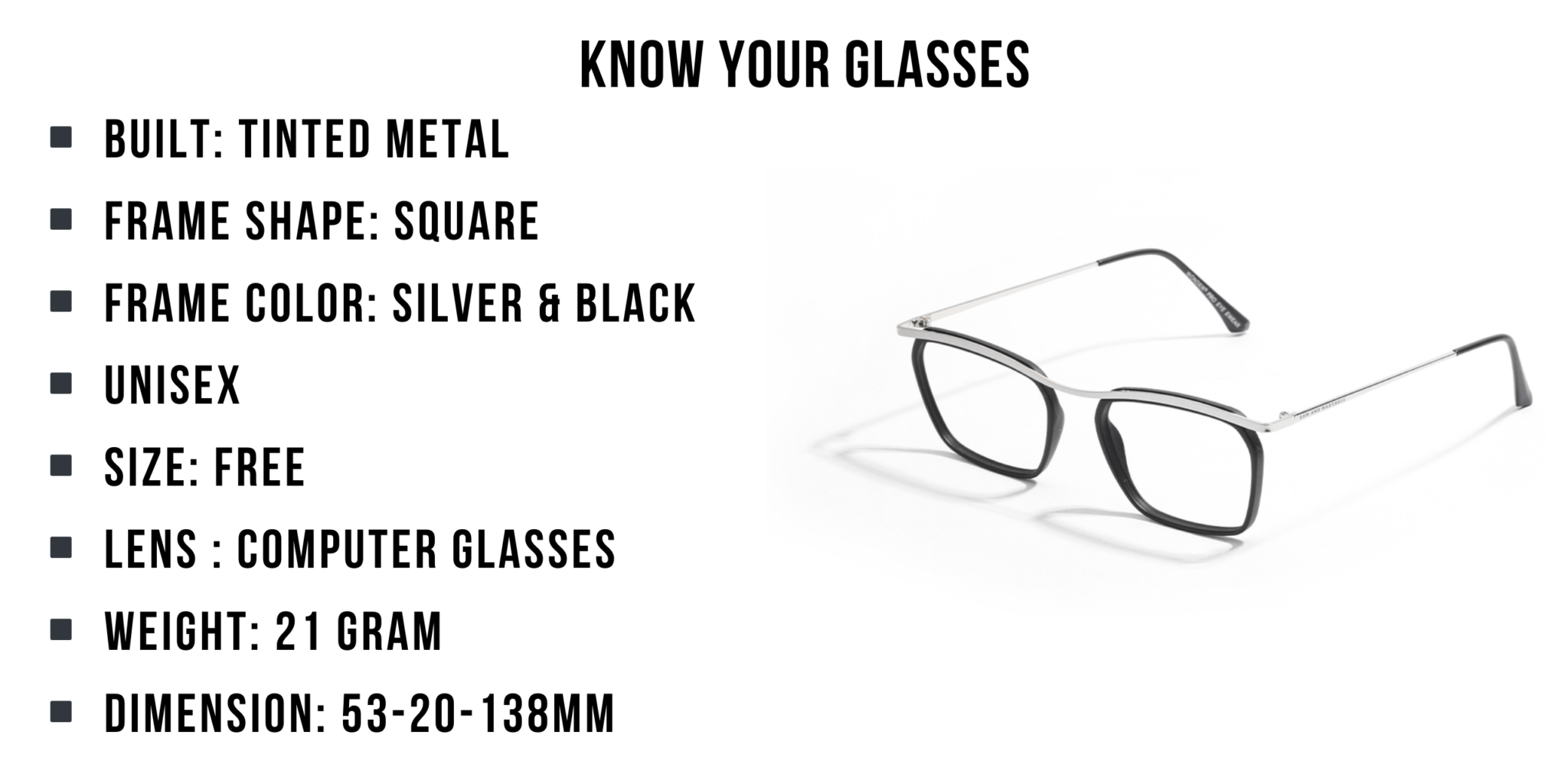 NOTE: For prescription eyeglasses or sunglasses with customized lenses, returns and refunds are not available. If incorrect prescription values are entered or if any issue arises from the customer’s end, refunds will not be processed
