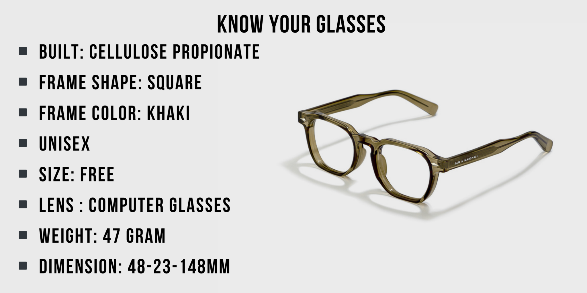 At Sam & Marshall Eyewear, we believe in adding value to your purchase. Here’s what you get based on your final order value of each product in the order:- For orders under ₹999: Enjoy the stylish Glok Case/Hard Case, complete with a selvet cloth.