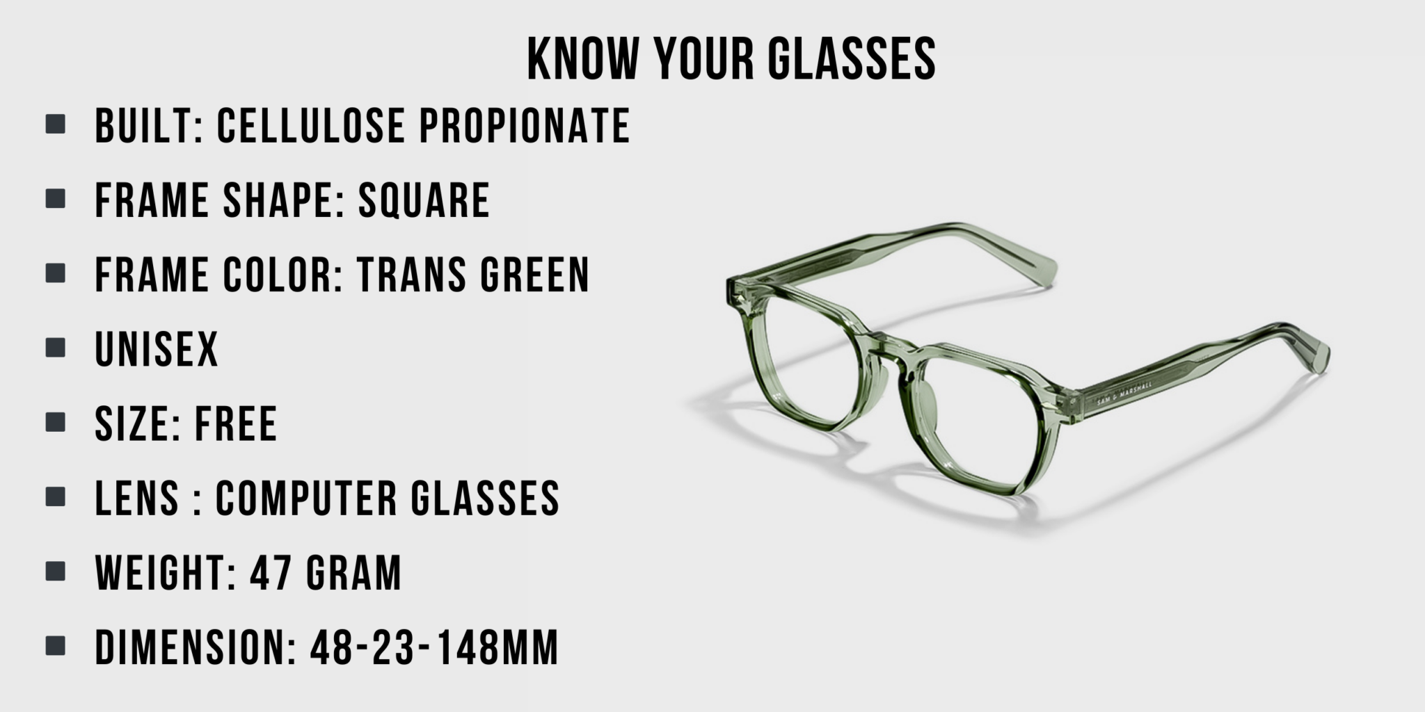At Sam & Marshall Eyewear, we believe in adding value to your purchase. Here’s what you get based on your final order value of each product in the order:- For orders under ₹999: Enjoy the stylish Glok Case/Hard Case, complete with a selvet cloth.