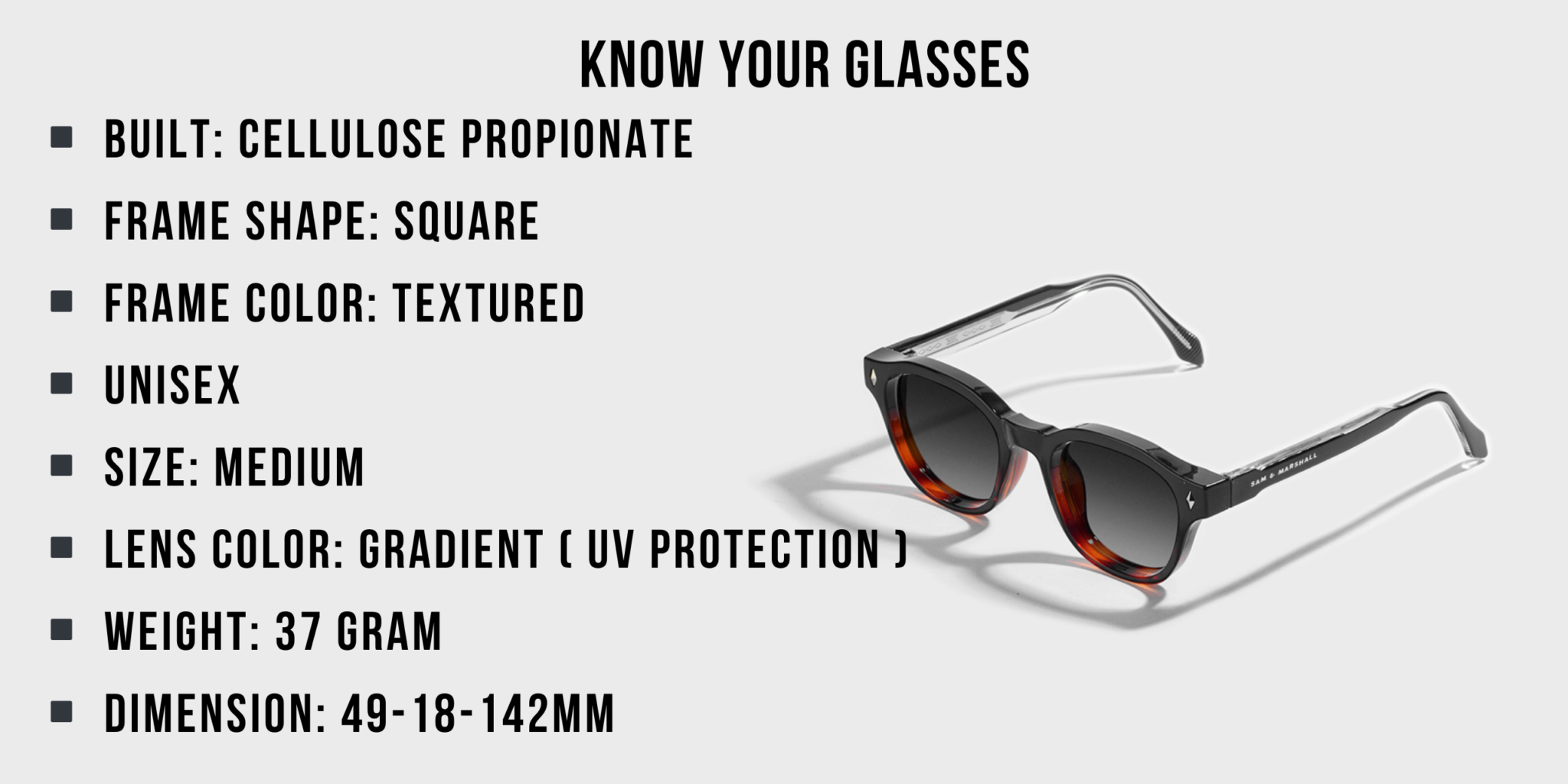 At Sam & Marshall Eyewear, we believe in adding value to your purchase. Here’s what you get based on your final order value of each product in the order:- For orders under ₹999: Enjoy the stylish Glok Case/Hard Case, complete with a selvet cloth.